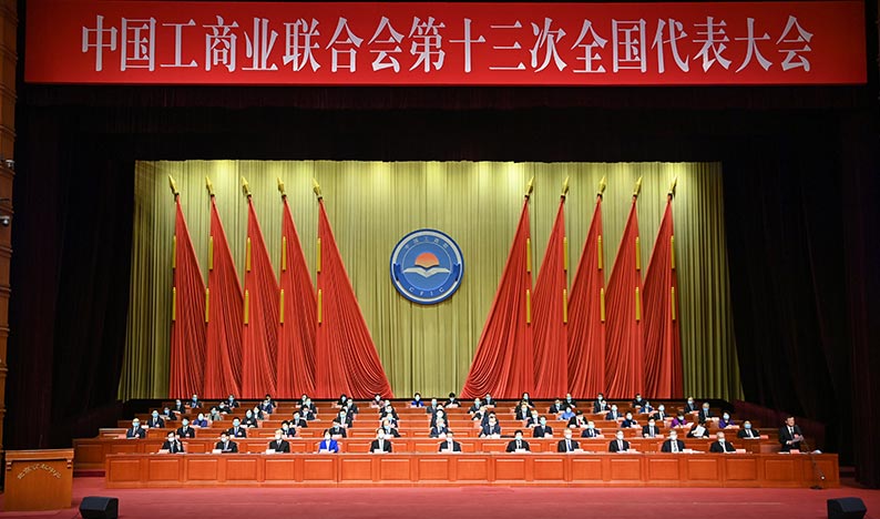 全國政協(xié)副主席、全國工商聯(lián)主席高云龍代表全國工商聯(lián)第十二屆執(zhí)行委員會作工作報告。報告在全面回顧工商聯(lián)五年來的工作后指出,工商聯(lián)要全面貫徹習(xí)近平新時代中國特色社會主義思想,深入學(xué)習(xí)貫徹黨的二十大精神,認(rèn)真落實中央統(tǒng)戰(zhàn)工作會議精神,圍繞促進(jìn)“兩個健康”主題,充分發(fā)揮在民營經(jīng)濟人士思想政治建設(shè)中的引導(dǎo)作用、在民營企業(yè)改革發(fā)展中的服務(wù)作用,推動民營經(jīng)濟高質(zhì)量發(fā)展,積極引導(dǎo)廣大民營經(jīng)濟人士爭當(dāng)愛國敬業(yè)、守法經(jīng)營、創(chuàng)業(yè)創(chuàng)新、回報社會的典范,做合格的中國特色社會主義事業(yè)建設(shè)者,為全面建設(shè)社會主義現(xiàn)代化國家、實現(xiàn)中華民族偉大復(fù)興作出新的更大貢獻(xiàn)。