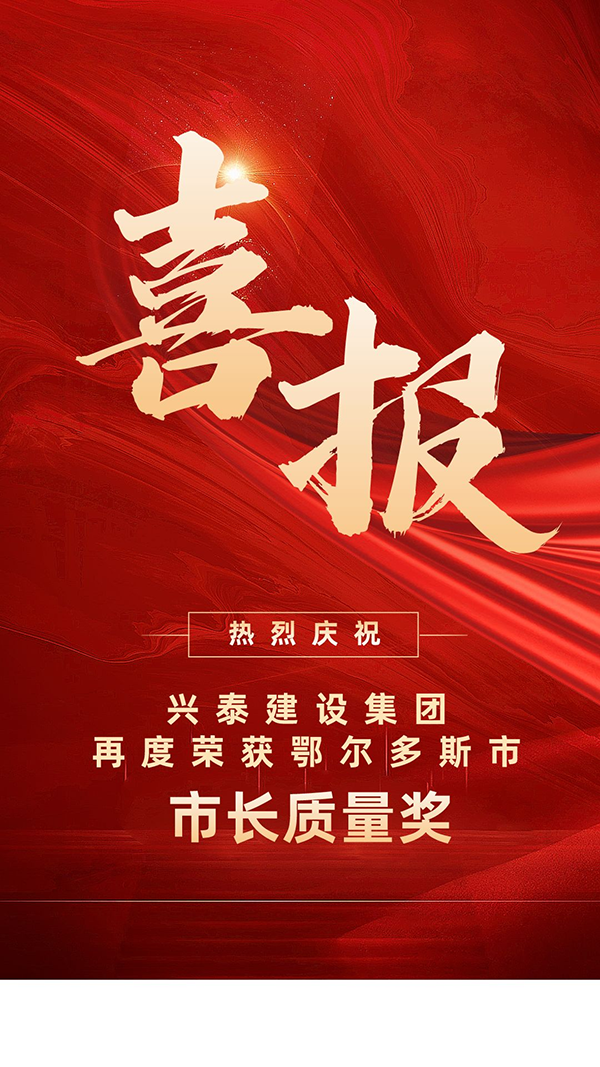 4月6日,鄂爾多斯市第八屆市長質(zhì)量獎頒獎儀式在鄂爾多斯市國際會展中心舉行。興泰建設(shè)集團有限公司獲評鄂爾多斯市市長質(zhì)量獎,這是繼2012年獲此榮譽后,全市唯一一家再次獲此殊榮的企業(yè)。