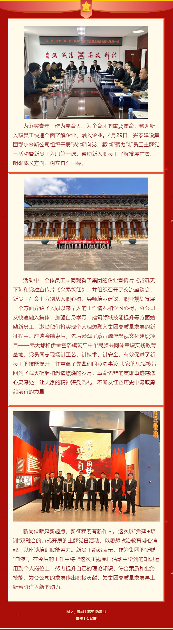 興泰建設集團鄂爾多斯公司開展“興‘新’向黨、凝‘新’聚力”主題黨日活動暨新員工入職第一課